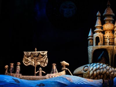 Такого Пушкина вы нигде больше не найдете! Потому что это Пушкин в стиле фолк-рок, музыкально-танцевальный авторский хит композитора Николая Шамшина. В спектакле бесподобные декорации (например, волны моря-океана вращаются, как в старинном театре) и невероятные деревянные куклы, вырезанные вручную: белка-щелкунчик, морские витязи с русалочьими хвостами и так далее. Каждая из них — произведение искусства.