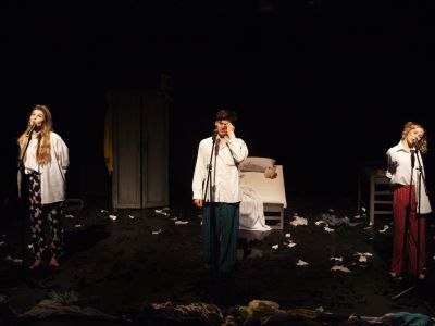 Пьеса известного немецкого драматурга, лауреата литературных премий Германии Рональда Шиммельпфеннига «Пчела в голове» с успехом идёт в различных немецких театрах. Спектакль для семейного просмотра не только рассказывает о социальных проблемах, но также имеет неожиданный терапевтический эффект, обозначая возможные пути решения этих проблем.