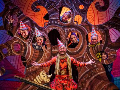 В сказках Чуковского столько животных, птиц и других существ, что не хватит артистов в театре, чтобы всех их сыграть. Поэтому они прямо на глазах у зрителей будут переодеваться в костюмы персонажей из сказок Чуковского, которые растут у нас на сцене на чудо-дереве. Зрители говорят, что наш Айболит смешной, а Бармалей — совсем не страшный и очень даже симпатичный разбойник.