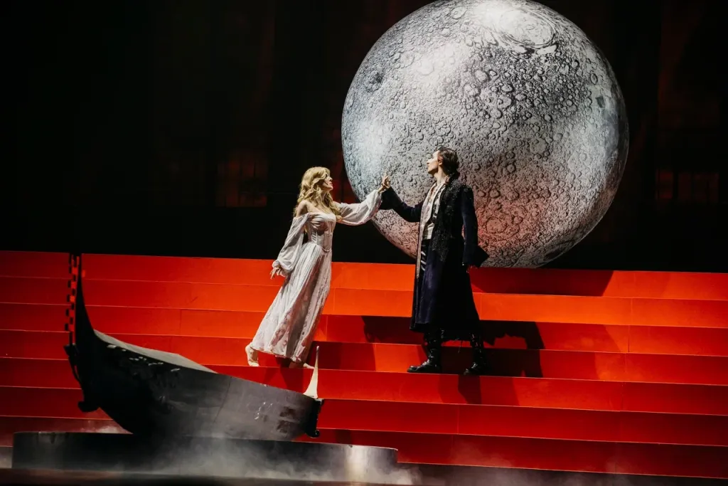 Музыкальное полотно спектакля соткано из тончайших мелодий двух любящих сердец. Хрустальные аранжировки и невероятные голоса главных героев создают по-настоящему чувственную, пронзительную атмосферу, которую сменяют шумные эффектные номера в духе Стравинского.