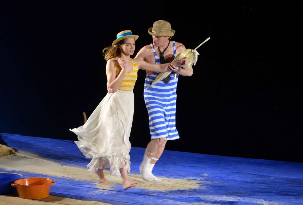 Дама с собачкой — одно из самых популярных произведений Чехова, которое было написано не для сцены. В нем много монологов и томных описаний. Но в руках талантливого К. Гинкаса данное произведение заиграло по-новому. На сцене знакомые всем персонажи. Ялта, один из курортов, где встречаются Анна Сергеевна и Гуров. По стечению обстоятельств между ними закручивается роман. Но отпуск кончается, и любовная пара расстается, разъезжаясь по разным городам и своим семьям. Но встречи между Анной Сергеевной и Гуровым продолжаются. И с ужасом они обнаруживают, что столкнулись с той же кромешной скукой, от которой бежали из своих семей.
