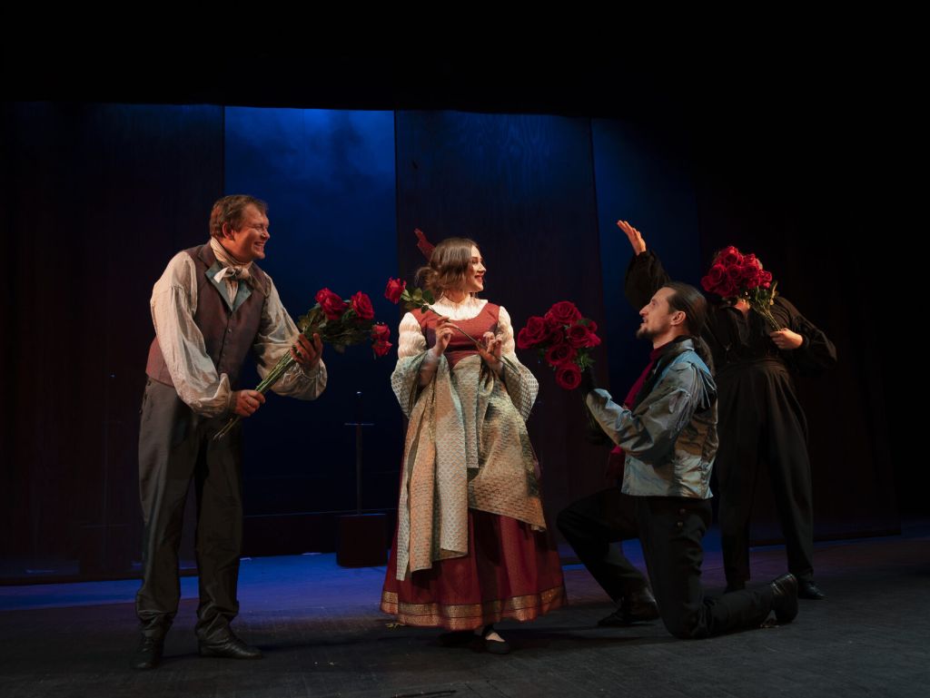 В сценической версии предельно обнажена человеческая одержимость: деньгами, любовью, гармонией, стремлением в познании мира и к изменению вселенского Божественного замысла.
