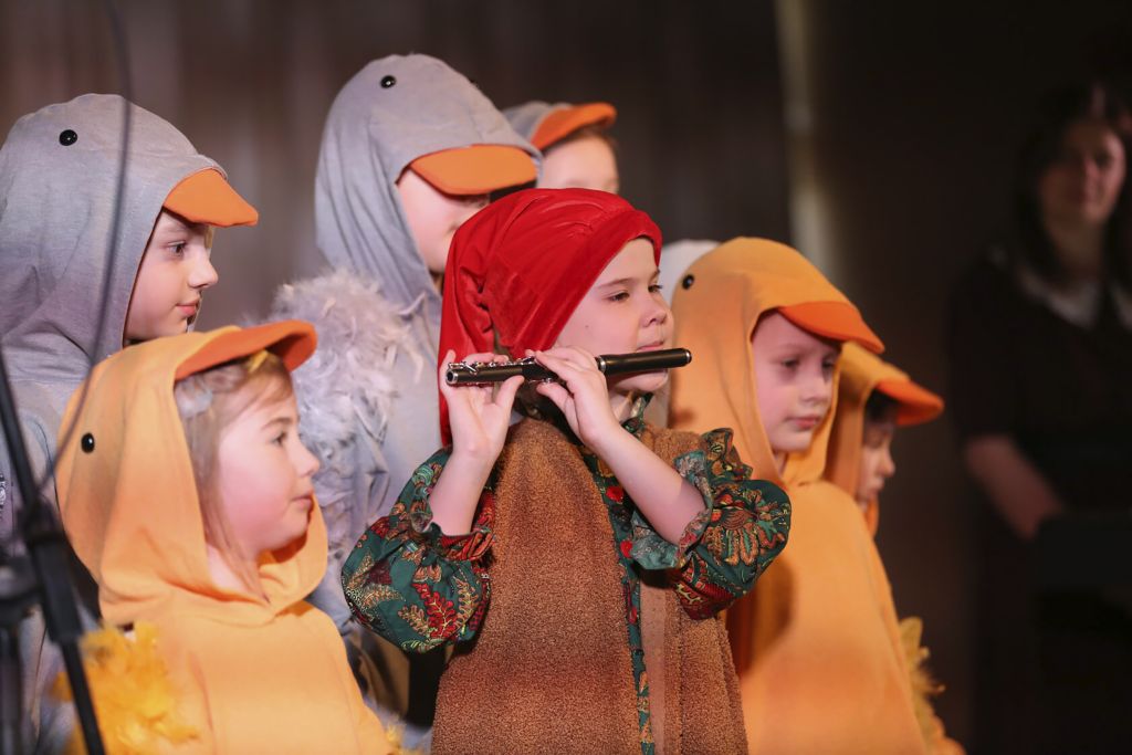 В программе участвуют: артисты симфонического оркестра Мариинского театра, солистка театра «Петербург-концерт», учащиеся Детской музыкальной школы им. Андрея Петрова, детский хор филармонического общества и учащиеся Детской музыкальной школы «Пикколо». Автор постановки и ведущая — Ольга Пикколо.