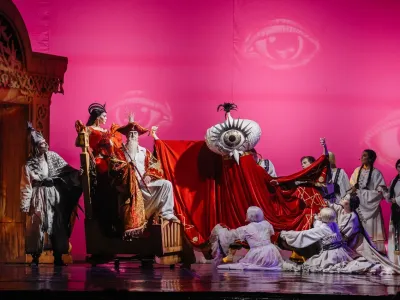 Хореограф Никита Борис создал на сцене эффектные танцевальные номера, в которых нашли отражение и русская пляска, и характерный современный танец. В спектакле звучат народные мотивы, а также специально созданная музыка, вобравшая в себя мотивы опер русских композиторов (автор музыки к «Сказке о Золотом петушке» Александр Богачёв).