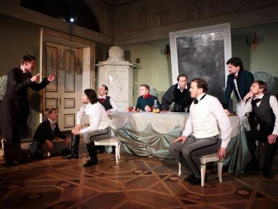 В спектакле театра «Пушкинская школа» неспешный уклад жизни уездного города очаровывает: в нем царит хрупкая гармония, разрушенная вестью о прибытии ревизора. Хлестаков в исполнении Ивана Мозжевилова – это не пустышка, а сочинитель, с интересом наблюдающий за происходящим и окружающими. Владимиру Рецептеру удается бережно сохранить авторскую интонацию и в то же время придать спектаклю поистине пушкинскую легкость.