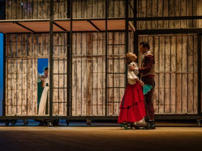Интрига любовного треугольника расцвечивается страстными испанскими песнями, зажигательным фламенко. Мулеты, шали, кастаньеты задают ритм всему спектаклю.