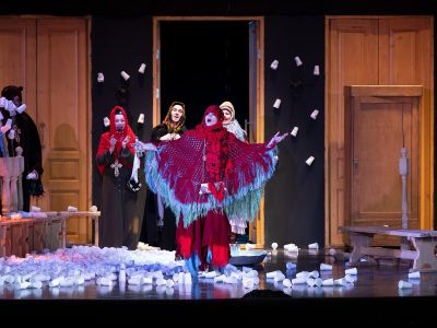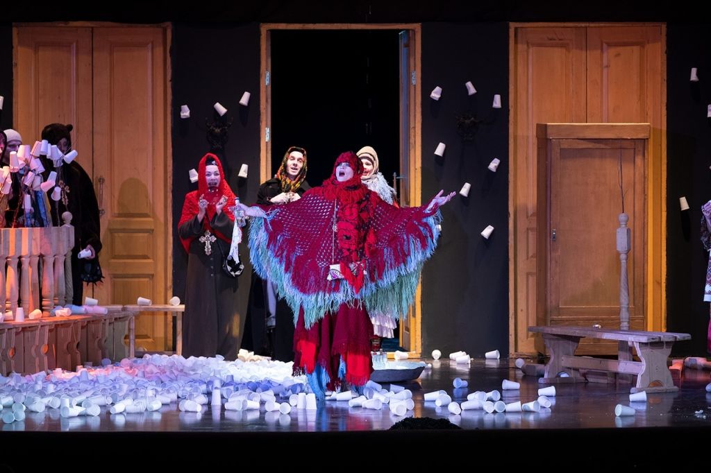 Высокий эмоциональный накал постановки проявляется в постоянных переглядываниях, перепихиваниях и пританцовываниях героев. Согласованный и гармоничный состав актеров проводит спектакль единой яркой линией от начала до конца.
