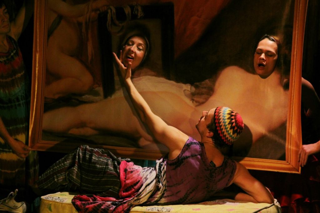 А жизненных сил у этих артистов — не занимать, превзойдут любой театральный коллектив страны. Кроме текста Гольдони на сцену выводится безудержный праздник урожая, бесшабашное веселье невероятной мощи. Повсюду — взрывающиеся фрукты, танцы во фруктовом соке, а ещё — «ожившие» рубенсовские картины. Последние наполнены тройным смыслом. Первый — смех над современными театрами, «вставляющими» актёрские головы в декорации пьес; второй — советский курортный антураж; третий — смех во всей его живописности.