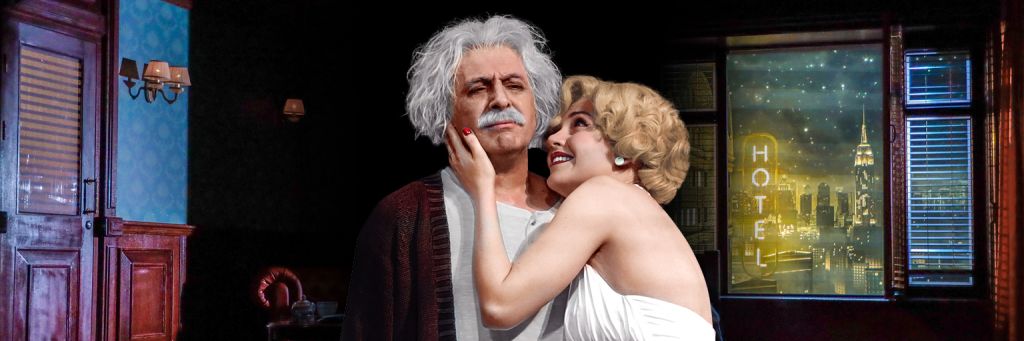 Представьте, что в 1954 году в номере нью-йоркского отеля совершенно случайно встретились всемирно известные актриса, спортсмен, сенатор и ученый. Прототипы этих персонажей узнаются сразу, хотя и не называются автором. Всю пьесу нам придется стоять на пороге доверия к происходящему. Вероятность этой встречи стремится к нулю, однако для нее были причины и о ней ходят слухи.