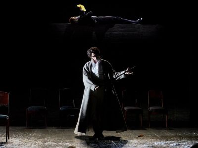 Создатели спектакля продолжают исследовать природные стихии на сцене. В декорациях разные состояния воды проявляют летучесть авторского слога и переменчивость главного героя. Снег то укутывает сцену перинами, то трещит морозами, то превращается в капель. Флешбэки, сны, размышления о прошлом меняют линейный ход истории и заставляют заново знакомиться с хрестоматийными героями. Этот «Евгений Онегин» рассчитывает на диалог со зрителем, хорошо знающим первоисточник и способным оценить хулиганства Пушкина на сцене.