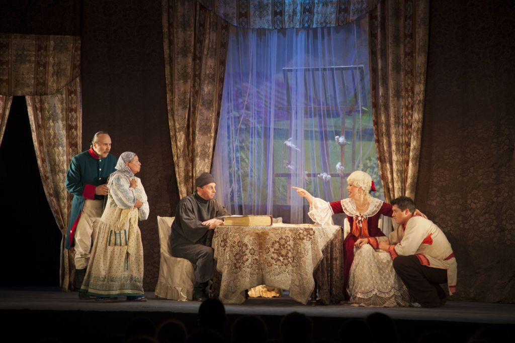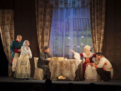 В постановке звучит музыка Дмитрия Шостаковича и русские народные мелодии.