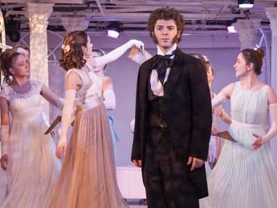 Речь идет о современном прочтении материала, а потому соединение в одном пространстве элегантных костюмов и воздушных платьев пушкинской поры с джинсами и футболками воспринимается как стилистически продуманный ход.