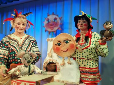 В спектакле использованы прекрасно выполненные планшетные куклы. Прямо-таки, сувенирные! А какие красивые костюмы у скоморохов! Под стать такому сценическому решению и музыка – веселая и зажигательная!