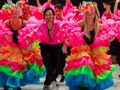В двух актах Алла Духова собрала все разнообразие танцевальных жанров — от классического балета, поражающего своей пластикой, до зажигательной румбы, веселого канкана и русской хороводной. А это больше двадцати номеров — нежных и страстных, озорных и ироничных, отточенных не только до мельчайших движений, но и до последней стразы на костюмах артистов. Их автор — Любовь Белочкина, в прошлом солистка балета, а ныне дизайнер костюмов театральных постановок. Костюмы, созданные ею, всегда идеально дополняют яркие образы балета Todes, и спектакль «Инзенайт» не стал исключением.