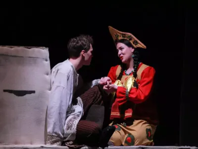 Живет Емеля, ни о чем не тужит да чудеса творит чудодейные. Прознал про то сам Царь-батюшка. Призвал к себе царь Емелю, чтобы тот объяснил, как чудеса чудодейные действует, а дочь его в Емелю влюбилась. И все бы у них сладилось, если бы не козни заморского жениха Вольдемара. А чем дело кончилось, вы узнаете, когда придете к нам в театр.