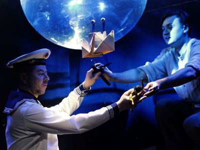 Язык Айтматова поэтичен и насыщен метафорами, история разрушения последнего оплота традиций показана глазами мальчика. Сначала мы видим и чувствуем прекрасную природу, которая его окружает, с которой он общается. Его друзья — ширалджины — растения, в которых он любит прятаться. Он играет с камнями, с палочками, с землей — все это хочется передать в спектакле- сделать живую среду. Использовать настоящие камни, воду, песок, глину, растения. Самые дорогие для него существа это — портфель, бинокль и фуражка, а ещё белый пароход, который изредка появляется вдалеке, и на котором, как думает мальчик, работает его отец.