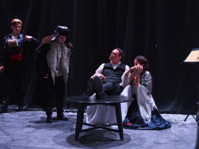 На сцене соединяются цыганское кабаре, русский романс и французский водевиль, создавая яркий синтез музыкальных и театральных форм. В спектакле сочетаются элементы буффонады, пластики и хореографии.