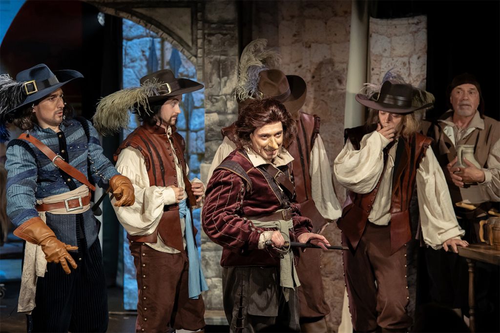 В центре повествования — история любви острослова, поэта и дуэлянта Сирано де Бержерака к юной кузине Роксане, в свою очередь влюблённой в молодого красавца Кристиана, приехавшего в Париж и поступившего на службу в гвардейский полк.