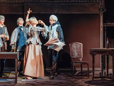 «Моцарт и Сальери. Версия» — ода великим музыкантам и одновременно психологический анализ человеческих чувств. Постановка все время перебрасывают зрителей в разные временные пласты на грани между реальностью и художественным вымыслом. От этого история становится абсолютно непредсказуемой и даже детективной.