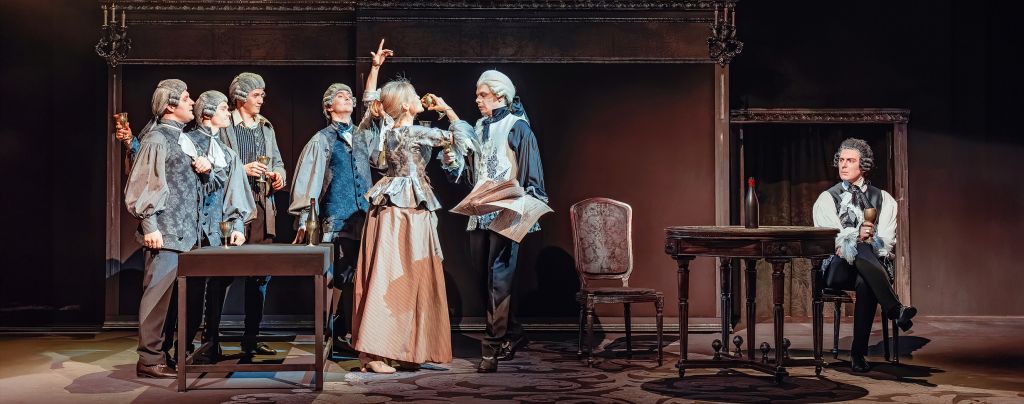 В спектакле режиссер обращается не только к пушкинскому тексту, но и к миланскому процессу 1997 года по делу о предполагаемом убийстве Моцарта. В ходе суда были заслушаны свидетели обвинения, защиты и спустя 200 лет вынесен непредвзятый вердикт.
