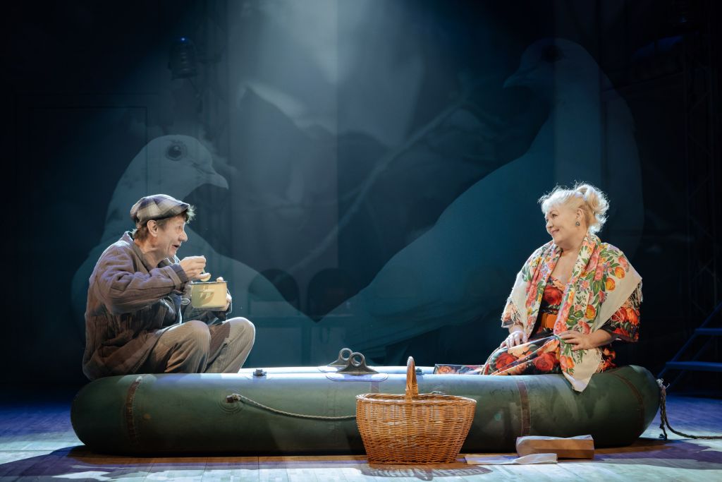 Фильм «Любовь и голуби» стал частью нашего культурного кода, а диалоги персонажей разобраны на цитаты. Именно поэтому режиссёр Тимур Насиров не соревнуется ни с фильмом, ни с другими театральными постановками легендарной пьесы. «Любовь и голуби» для него — повод в очередной раз поговорить со зрителем о чуде театра, о том, как рождается мир спектакля, как он проникает в сердца и души зрителей.