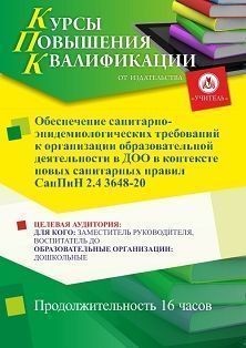 Обеспечение санитарно-эпидемиологических требований к организации образовательной деятельности в ДОО в контексте новых санитарных правил СанПиН 2.4 3648-20 (16 ч.)