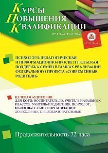 Психолого-педагогическая и информационно-просветительская поддержка семей в рамках реализации Федерального проекта «Современные родители» (72 ч.)