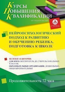Нейропсихологический подход к развитию и обучению ребенка. Подготовка к школе (72 ч.)