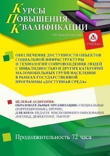 Обеспечение доступности объектов социальной инфраструктуры и технологии сопровождения людей с инвалидностью и других категорий маломобильных групп населения в рамках государственной программы «Доступная среда» (72 ч.)