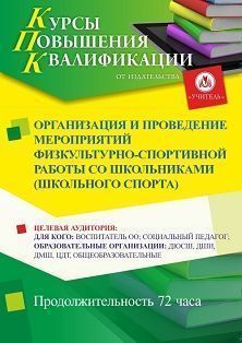 Организация и проведение мероприятий физкультурно-спортивной работы со школьниками (школьного спорта) (72 ч.)
