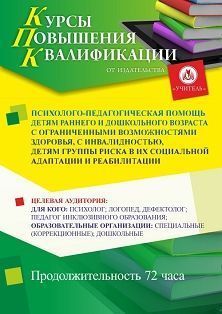 Психолого-педагогическая помощь детям раннего и дошкольного возраста с ограниченными возможностями здоровья, с инвалидностью, детям группы риска в их социальной адаптации и реабилитации (72 ч.)