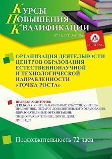 Организация деятельности Центров образования естественнонаучной и технологической направленностей «Точка Роста» (72 ч.)