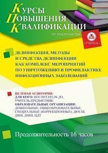 Дезинфекция, методы и средства дезинфекции как комплекс мероприятий по уничтожению и профилактике инфекционных заболеваний (16 ч.)