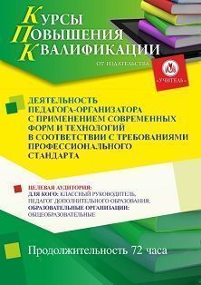 Деятельность педагога-организатора с применением современных форм и технологий в соответствии с требованиями профессионального стандарта (72 ч.)