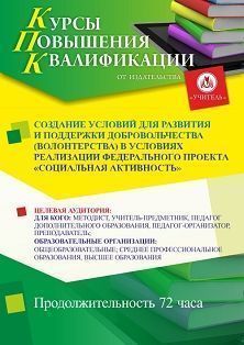 Создание условий для развития и поддержки добровольчества (волонтерства) в условиях реализации Федерального проекта «Социальная активность» (72 ч.)