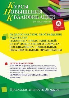 Педагогическое просвещение родителей (законных представителей) детей дошкольного возраста, посещающих дошкольные образовательные организации (36 ч.)