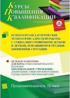 Психолого-педагогические технологии адресной работы с социально уязвимыми детьми и детьми, попавшими в трудные жизненные ситуации (72 ч.)
