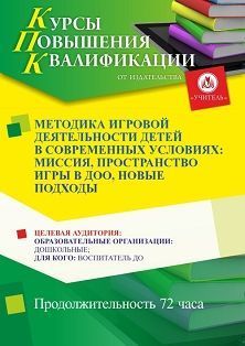 Методика игровой деятельности детей в современных условиях: миссия, пространство игры в ДОО, новые подходы (72 ч.)