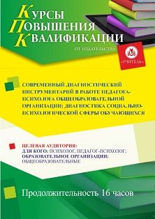 Современный диагностический инструментарий в работе педагога-психолога общеобразовательной организации: диагностика социально-психологической сферы обучающихся (16 ч).