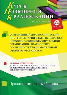 Современный диагностический инструментарий в работе педагога-психолога общеобразовательной организации: диагностика особенностей познавательной сферы обучающихся (36 ч.)