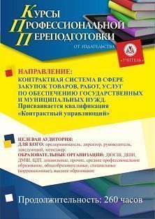 Контрактная система в сфере закупок товаров, работ, услуг по обеспечению государственных и муниципальных нужд. Присваивается квалификация «Контрактный управляющий» (260 ч.)