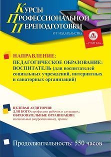 Педагогическое образование: воспитатель (для воспитателей социальных учреждений, интернатных и санаторных организаций) (550 ч.)