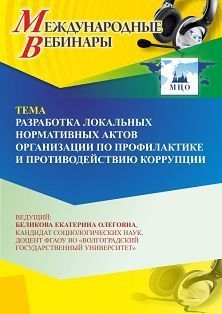 Международный вебинар «Разработка локальных нормативных актов организации по профилактике и противодействию коррупции»