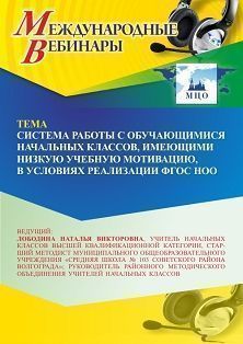 Международный вебинар «Система работы с обучающимися начальных классов, имеющими низкую учебную мотивацию, в условиях реализации ФГОС НОО»