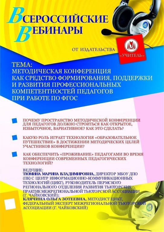 Приглашаем заместителей директоров ОО, курирующих методическую работу, методистов ОО и муниципальных методических служб, тьюторов, руководителей профессиональных сообществ (МО, проблемных групп и др.) принять участие в offline-семинаре «Методическая конференция как средство формирования, поддержки и развития профессиональных компетентностей педагогов при работе по ФГОС».
