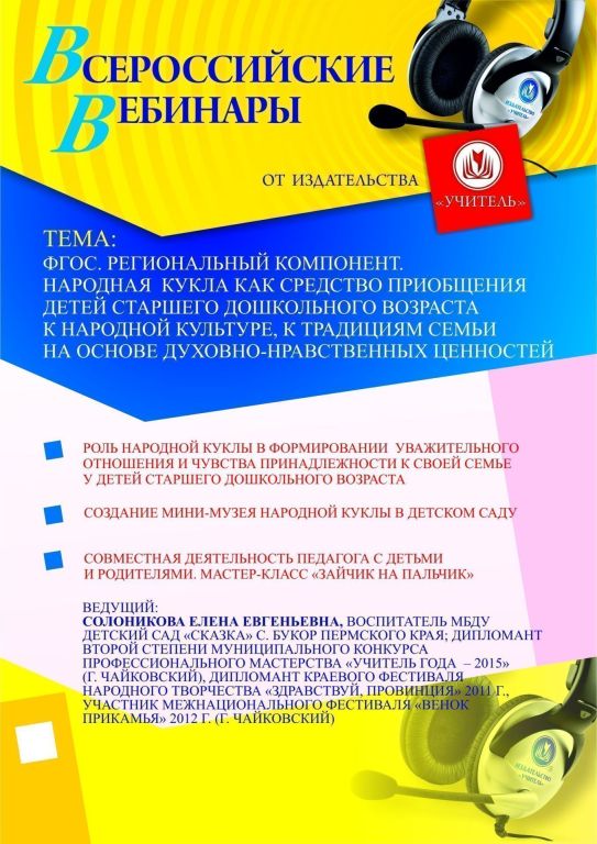 Приглашаем педагогов дошкольных образовательных организаций, методистов принять участие в offline-семинаре «ФГОС. Региональный компонент. Народная кукла как средство приобщения детей старшего дошкольного возраста к народной культуре, к традициям семьи на основе духовно-нравственных ценностей».