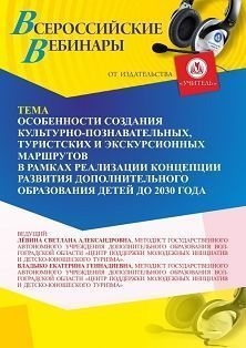 Вебинар «Особенности создания культурно-познавательных, туристских и экскурсионных маршрутов в рамках реализации Концепции развития дополнительного образования детей до 2030 года»