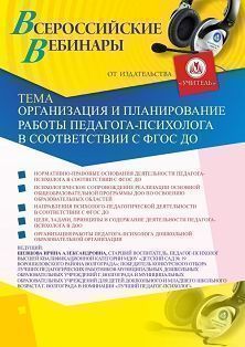 Вебинар «Организация и планирование работы педагога-психолога в соответствии с ФГОС ДО»