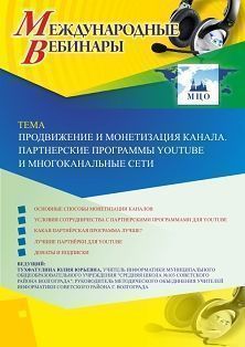Международный вебинар «Продвижение и монетизация канала. Партнерские программы YouTube и многоканальные сети»