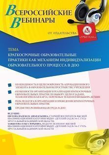 Вебинар «Краткосрочные образовательные практики как механизм индивидуализации образовательного процесса в ДОО»